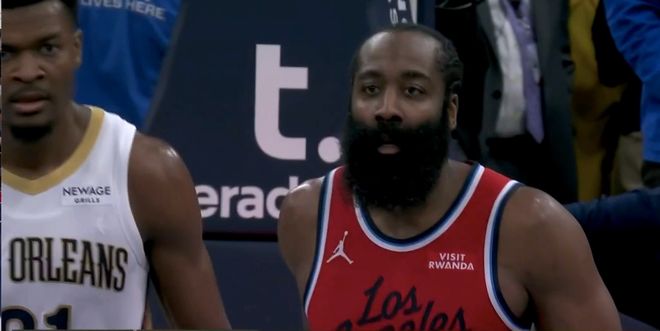 很快,哈登就开始大秀自己的进攻技法,先是单打锡安,连续胯下后利用节奏的变化甩开锡安,突破上篮得手。